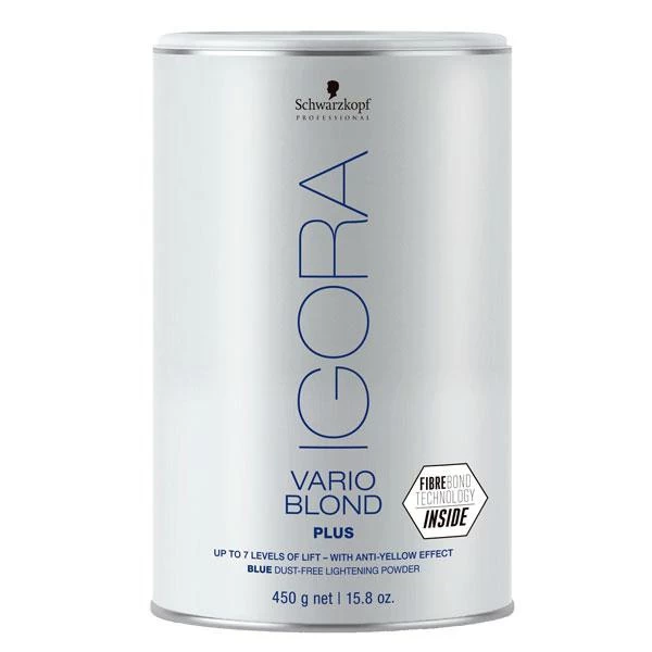 The bleaching powder Igora vario blond plus is specially designed to lighten colored or natural hair, up to 7 levels. Its formula with Integrated Fiber Bond technology creates bonds within the hair fiber and reduces breakage.