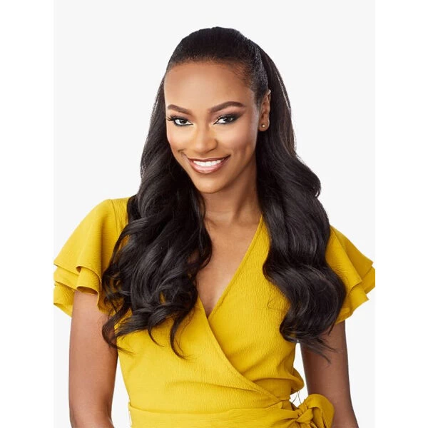 Can be worn as a Half Wig or Updo by adjusting the drawstring cap.