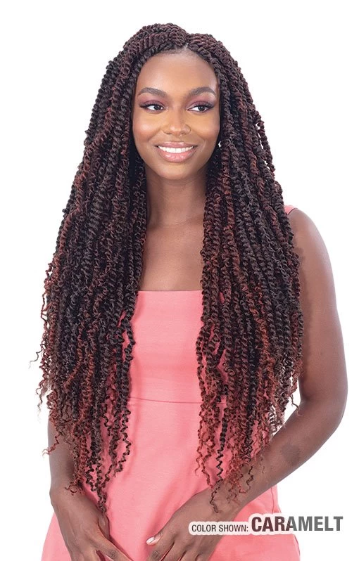 Freetress Braid 2X Spring Twist 26″ resembles the finished look of a Passion Twist and Spring Twists made with authentic Freetress Water Wave. They are light weight and beginner friendly. A great protective hairstyle for all season round!