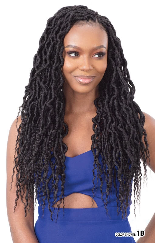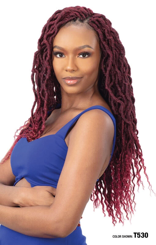 Our Freetress braid 3X Ghana Loc is naturally textured locs with different wavy loc patterns! It also features a unique pre-braided out curls at the ends of each loc that give this look an overall exclusive, one of a kind look!