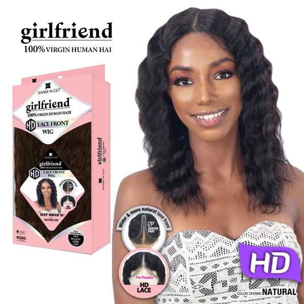 SHAKE-N-GO GIRLFRIEND 100% VIRGIN HUMAN HAIR HD LACE FRONT WIG – DEEP WAVER 16″