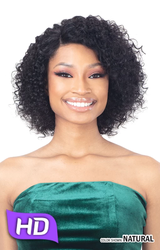 Naked Premium 100% human hair wig Arden features a beautiful crimp curl in an easy to manage and wear, bob. Arden also has ear to ear HD lace with a 5″ center lace part. Dye it, bleach it, customize it!