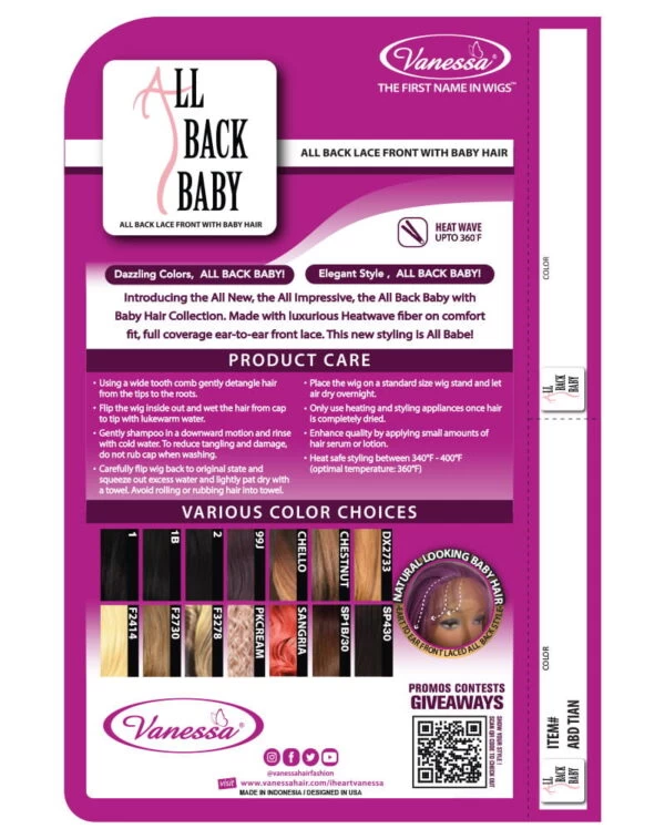 VANESSA ALL BACK BABY SYNTHETIC LACE FRONT WIG – ABD TIAN